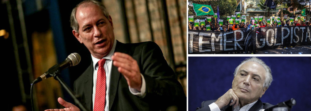 Ciro convocou os brasileiros a “protegerem a democracia”. “O que acontece no Brasil hoje é que uma presidente eleita pelo povo contra quem não pesa nenhuma acusação do ponto de vista moral está sendo derrubada para ser substituída por uma mão trepide de políticos ladrões, corruptos e descompromissados com a questão brasileira. E isso é uma ameaça da democracia. Na prática, é uma eleição indireta com um candidato único. O impeachment da presidente Dilma é um golpe, pois o pretexto jurídico não existe. Não há crime, é uma pantomima”, disse.
