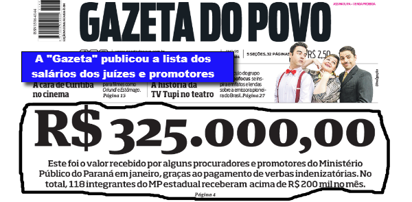 Após publicarem uma reportagem sobre supersalários de juízes e promotores do Paraná, repórteres do jornal “Gazeta do Povo” estão sendo processados em dezenas de cidades pelo Estado por magistrados que pedem indenização por danos morais.