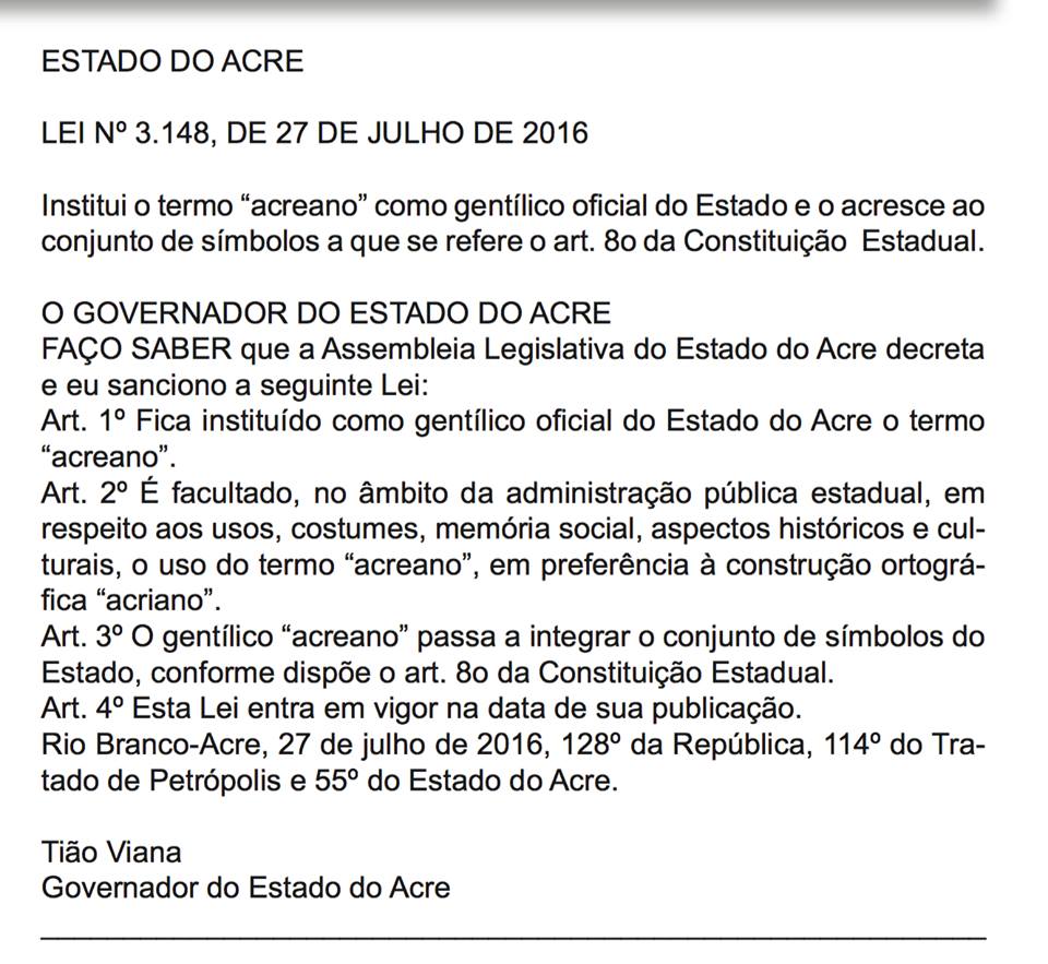 “É melhor devolver o Acre pra Bolívia do que escrever ‘acreano’ com ‘i’”.