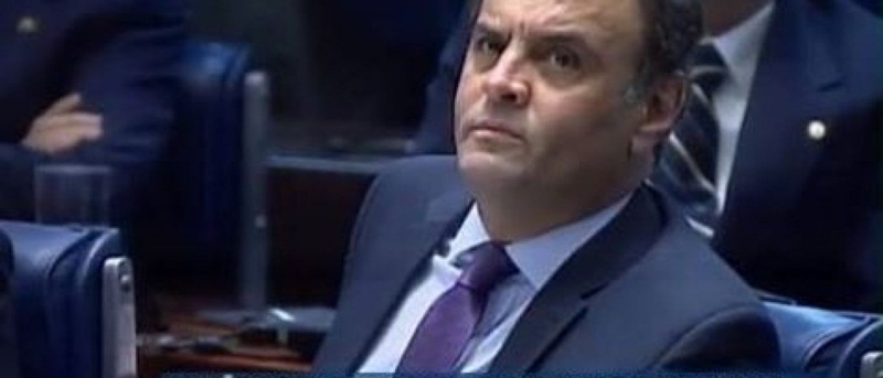 No mesmo instante, a TV Senado mostrou a reação do tucano, que é a da foto abaixo.