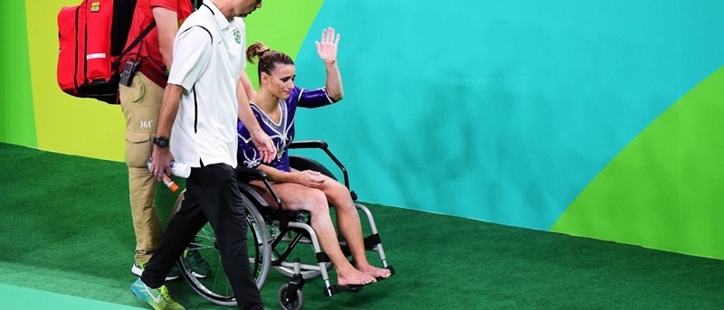 Ela foi prontamente atendida e deixou a Arena Olímpica em uma cadeira de rodas. Segundo o Sportv, ela está oficialmente fora da Rio-2016. Assim que a ginasta parou a apresentação, chorando e muito emocionada, o público começou a gritar seu nome e aplaudi-la.