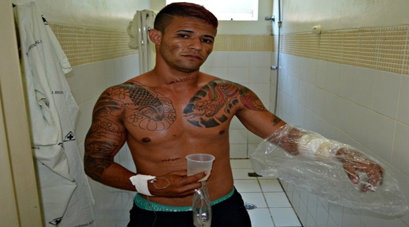 Além da lesão no braço, o preso apresenta ferimento no pescoço, antebraço esquerdo e direito. Quadros afirma que foi ferido durante uma briga com a vítima.