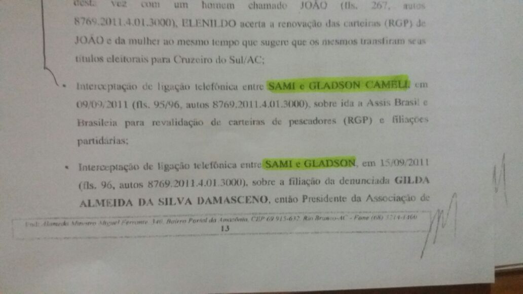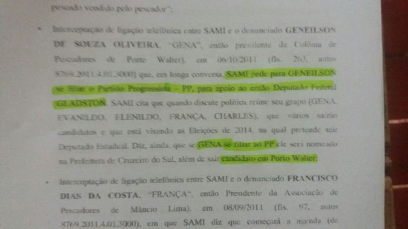 O documento cita ao menos três vezes o senador Gladson Cameli (PP), à época deputado federal, como beneficiário direto do esquema.