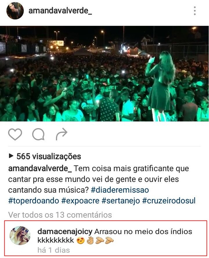“Arrassou no meio dos índios kkkkkkkkk”, disse Joicyanne Damacena.