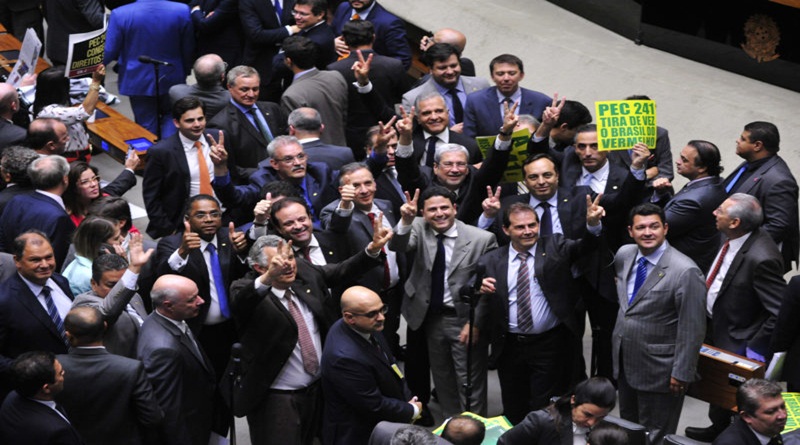 Depois de mais de sete horas de discussão e obstrução da oposição, o plenário da Câmara dos Deputados aprovou na noite de hoje (25), em segundo turno, o texto principal da proposta de emenda à Constituição (PEC) 241/2016, que limita os gastos públicos pelos próximos 20 anos à correção da inflação do ano anterior. Foram 359 votos a favor, 116 contrários e duas abstenções. Seis destaques ao texto apresentados pela oposição ainda precisam ser votados.