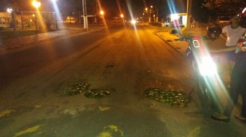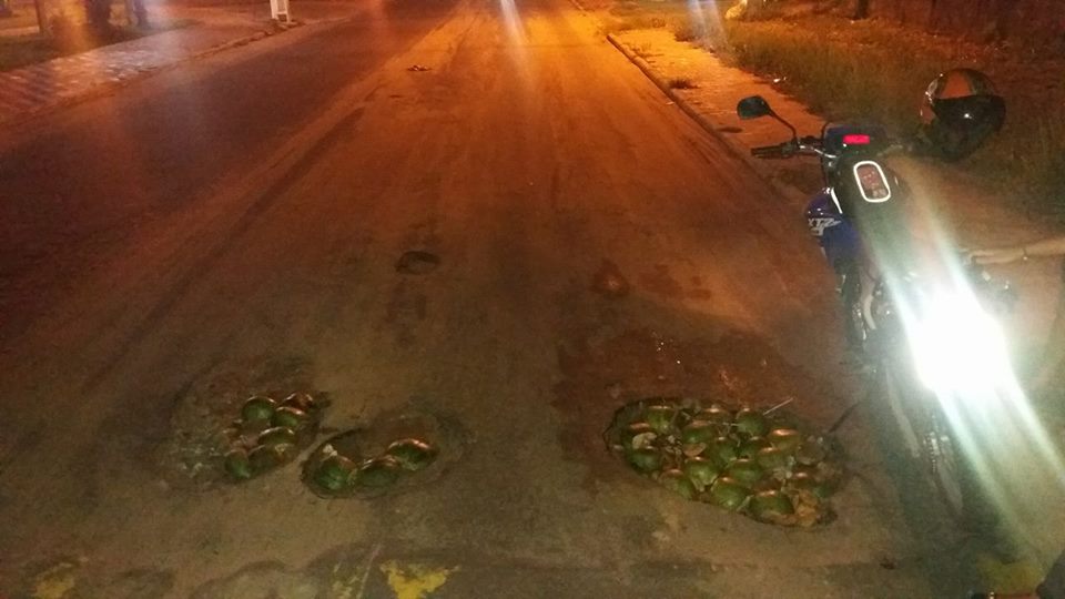 A ideia de usar os côcos foi inicialmente para amortecer o impacto, já que a maior cratera está localizada logo após uma lombada, o que dificulta a localização.