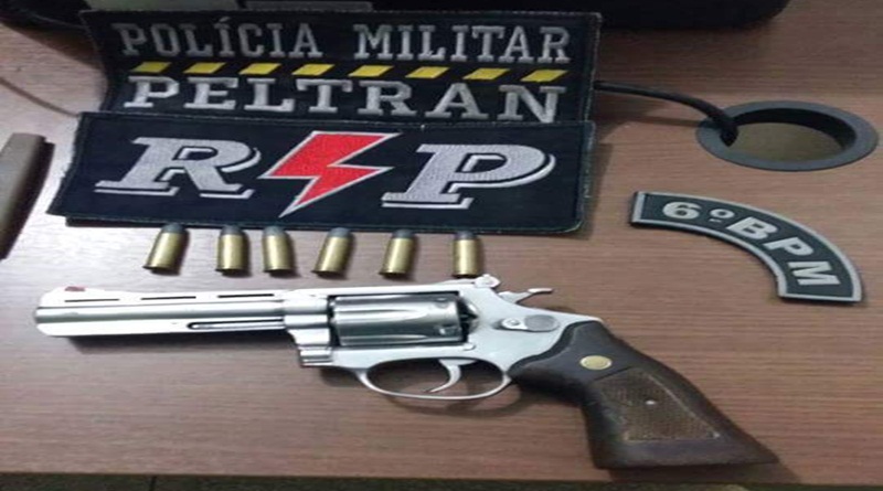 Diante das informações foram iniciadas as rondas, onde, em uma residência na Avenida 25 de agosto, encontraram dois suspeitos com as características apontadas pela vítima. Na busca no quintal da residência, foi encontrada uma mochila contendo uma blusa e um revólver calibre .38 com 06 cartuchos intactos.