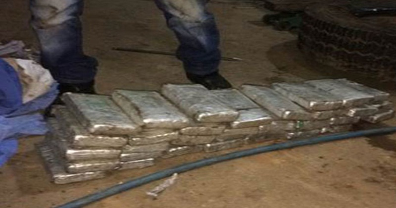 Durante uma busca minuciosa, foram localizados 34 “tijolos de COCAÍNA” escondidos em umas das rodas do caminhão.