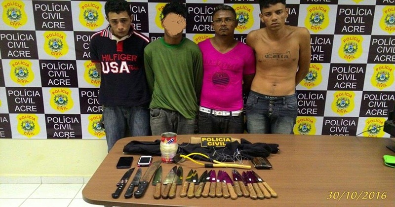 Foram presos: Esmael Moraes da Silva, 25, Djair Oliveira de Sousa, 28, Matheus Ferreira de Araújo, 20, e um adolescente, de 17 anos, ambos com passagem pelo sistema prisional. Todos foram indiciados por organização criminosa.