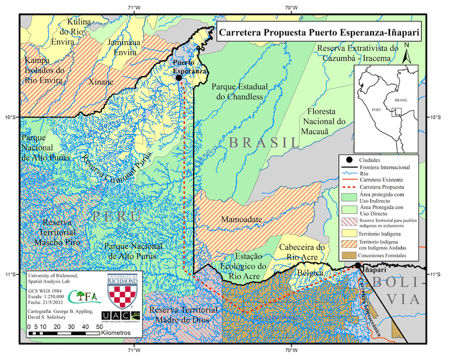 Um projeto de lei, apresentado no Congresso Peruano pelo parlamentar Carlos Tubino Schreiber, propõe a construção de uma estrada entre Inãpari e Puerto Esperanza, de cerca de 270 km.