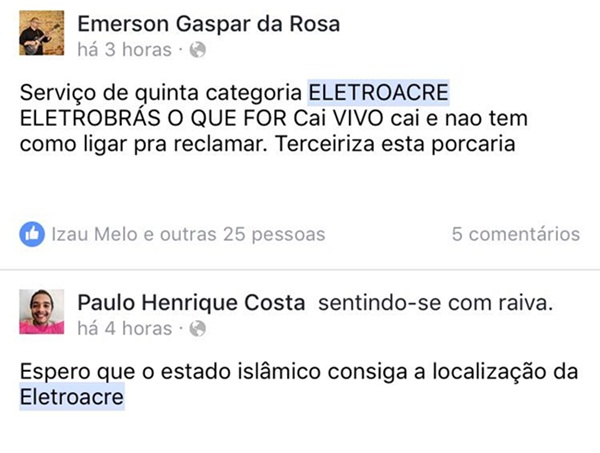 Além de reclamar das quedas frequentes de energia, muitos ainda ressaltaram a falta de atendimento, quando solicitam através do contato que é informado pela empresa, para casos emergenciais. Indignada, Janaira Silva, usuária da rede social Facebook, fez questão de ressaltar que “está virando moda” a queda de energia diariamente em sua residência.