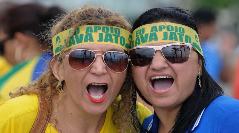 Muitos dos que foram ao bairro da Zona Sul carioca exibiam cartazes com mensagens de apoio ao juiz Sérgio Moro, encarregado por julgar processos ligados à Lava Jato.