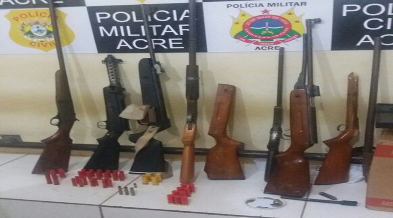 Através de uma denúncia anônima realizada via Centro Integrado de Operações em Segurança Pública (Ciosp), homens do Segundo Batalhão de Polícia Militar (2° BPM) prenderam na noite desse domingo, 25, três agentes sob posse de 8 armas de fogo, sendo uma delas uma submetralhadora 9 mm, que, supostamente, seriam utilizadas para o cometimento de crimes em Rio Branco.