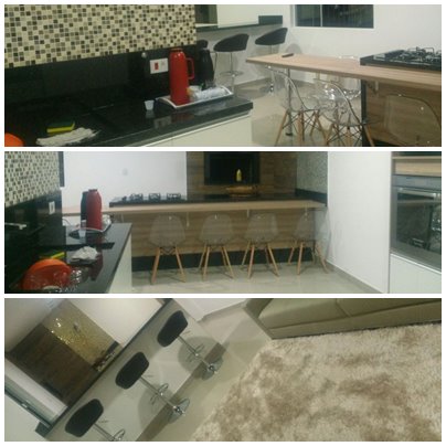 Ilha Gourmet: moderna churrasqueira, com fogão e bancada acoplados, além de modernas cadeiras em acrílico, forno de microondas e máquina de café expresso.