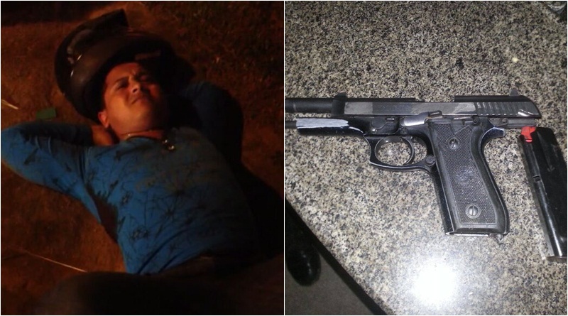 De acordo os policiais, eles realizavam patrulhamento de rotina pela região quando ouviram um disparo de arma de fogo efetuado por uma dupla em uma motocicleta. Os autores ao notarem que seriam acompanhados pelos militares efetuaram novamente um disparo contra a guarnição, que atingiu o vidro da porta da viatura. Logo após o ocorrido foi iniciado um acompanhamento, durante o qual a dupla efetuou diversos disparos contra os policiais, sendo interceptados no bairro Remanso. Na abordagem foi encontrada uma pistola PT 100 com numeração raspada e constatada a adulteração da placa da motocicleta.
