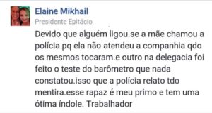 Nesse momento, do nada, o rapaz recebe ordem de prisão por embriaguez – os policiais afirmam que sentiram “odor etílico” nele e exigem teste do bafômetro, apesar de o carro estar estacionado e de o motorista ser outra pessoa sem o tal “odor”.