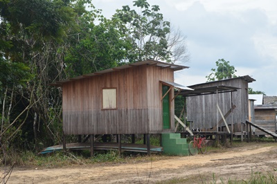Nas paredes das casas é possível ver a marca indicando que a alagação do rio Moa passou do assoalho.
