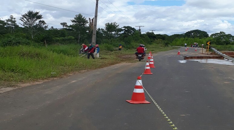 Agentes do Departamento Estadual de Trânsito (Detran) e o Departamento de Estradas de Rodagem do Acre (Deracre) articularam a sinalização desse ponto da estrada e prestam orientações aos condutores.