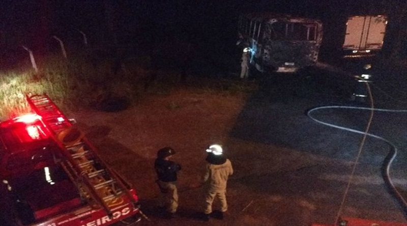 Criminosos incendeiam onibus estacionado em pátio da PRF