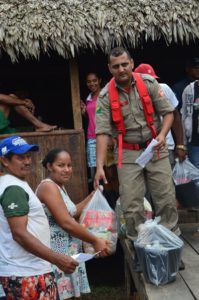 Também foram atendidas nesse primeiro dia as comunidades Luzeiro (11 cestas básicas + kits de limpeza), Ramal dos Esquecidos (11), Pucalpa (04), Mundurucus (08), Guarani (02), Sacada da Nova Cintra (04) e Praia da Amizade (42).