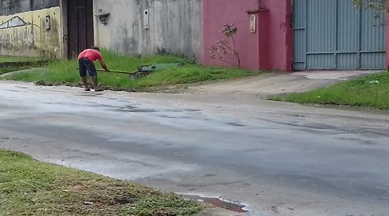 No bairro da Cohab, em Cruzeiro do Sul, o morador Marivaldo Pinheiro, de 34 anos anos, resolveu colocar a mão na massa, e resolver por si próprio, um trabalho que vinha aguardando ser realizado pela Secretaria de Obras da Prefeitura de Cruzeiro do Sul.