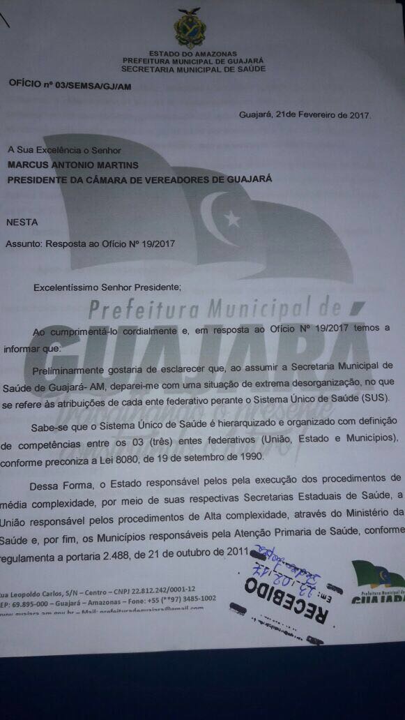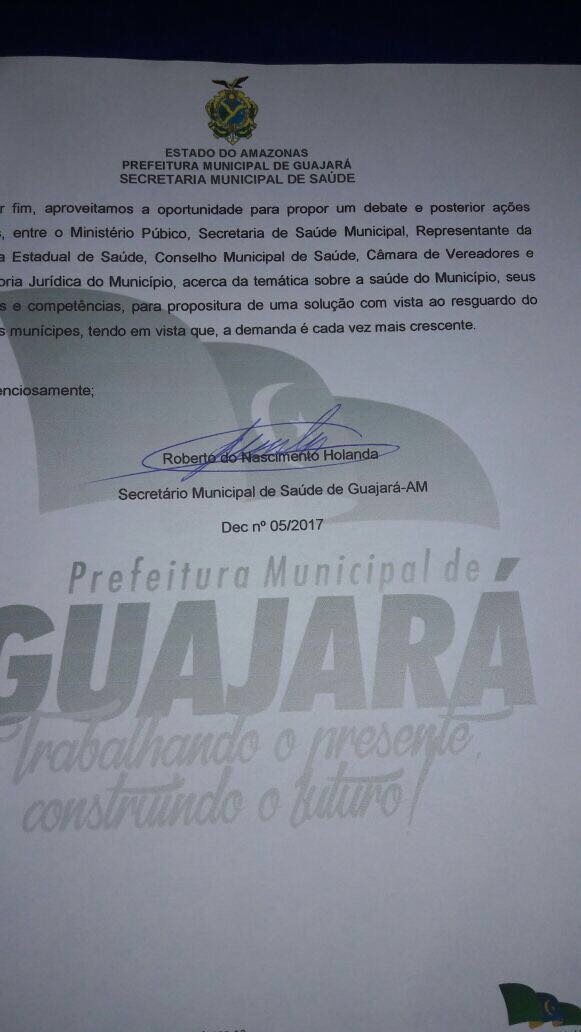 Este fato pode ser facilmente constatado, visto que, a Secretaria Municipal de Saúde já é alvo de investigação do Ministério Público Federal do Estado do Amazonas e Ministério Público Estadual (MPE-AM), através do ofício nº 157/2015/CABPAC/MPF/PR/AM e ofício de nº 1.2017.PJGUAJ.