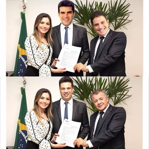 A fotografia original trazia a imagem da deputada federal Jessica Sales (PMDB), de um ministro do governo Temer e do ex-prefeito Vagner Sales. Na montagem as imagens foram substituídas pela do Ministro Helder Barbalho e do senador Gladson Cameli (PP).