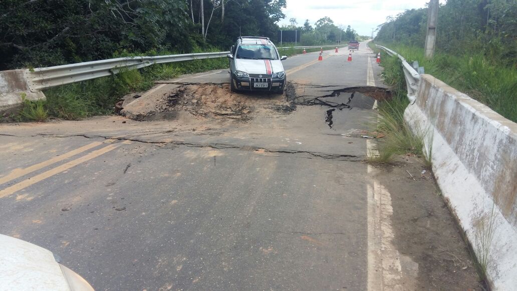O problema ocorre em um dos trechos de melhor trafegabilidade da BR, justamente entre os rios Juruá e Liberdade. Citado pela oposição como ‘exemplo’ de engenharia por ter sido concluído pelo empresário Orleir Cameli, a obra demonstrou não ser à prova das intempéries que castigam a BR 364 em toda sua extensão.
