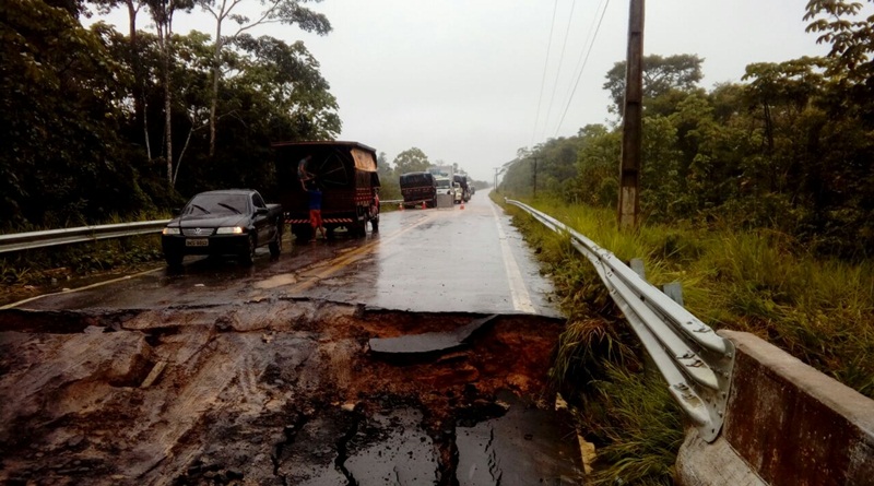 Técnicos do Dnit procederam agora há pouco a interdição da BR 364, na altura do Igarapé Cigana – distante 21 km do centro da cidade de Cruzeiro do Sul.