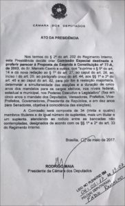 O presidente da Câmara dos Deputados, Rodrigo Maia (DEM-RJ), mandou instalar, na tarde desta quinta-feira, uma comissão especial para analisar uma proposta de emenda constitucional, apresentada pelo deputado Marcelo Castro (PMDB-PI), que estabelece a simultaneidade nas eleições para todos os cargos majoritários.
