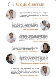 “A leitura é algo revolucionário na vida das pessoas. Obrigado aos 14.996 alunos do Quero Ler e os mais de mil professores que nos ajudam a vencer esse desafio. O Acre será o primeiro estado do Brasil a eliminar o analfabetismo. É a oportunidade de aprendizado que queremos que vocês aproveitem da melhor forma possível”, disse o governador durante a aula inaugural realizada no auditório da Secretaria de Estado de Educação e Esporte (SEE).