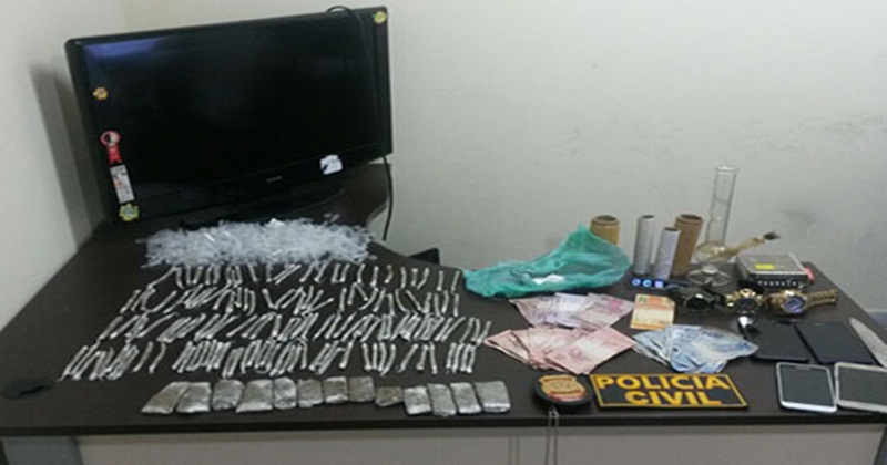 Com os acusados a polícia encontrou 160 tabletes de maconha, uma porção de cocaína, uma quantia de R$ 350, vasto material para embalagem da droga, além de uma balança de precisão.