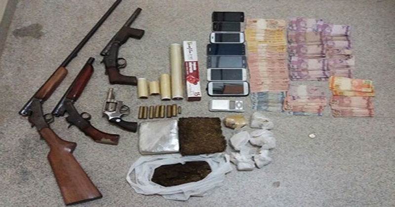 A Polícia Civil prendeu em flagrante 11 pessoas que estavam reunidas para planejamento de crimes. Com os criminosos, a polícia apreendeu duas armas de fogo, balança de precisão, três espingardas, um revólver calibre 38, dinheiro, celulares e material para embalagem de droga.