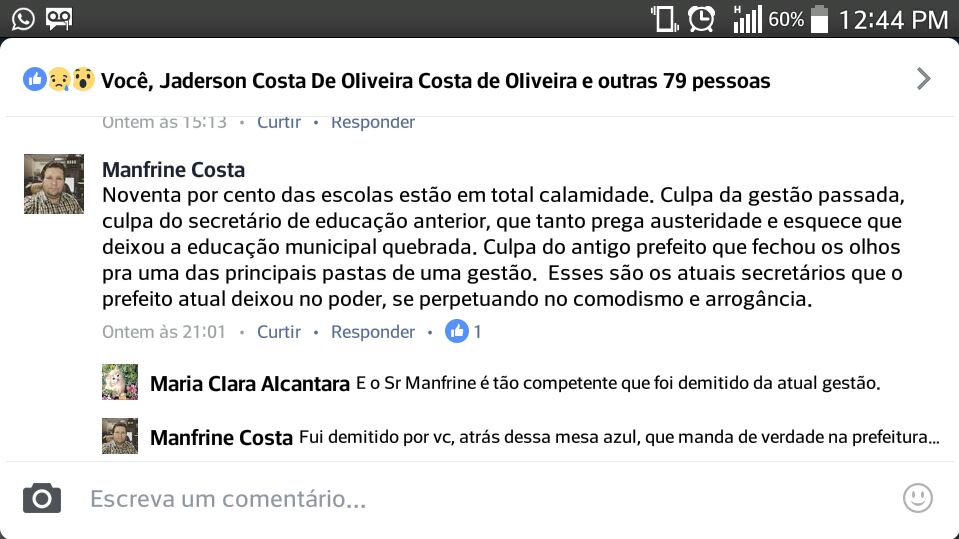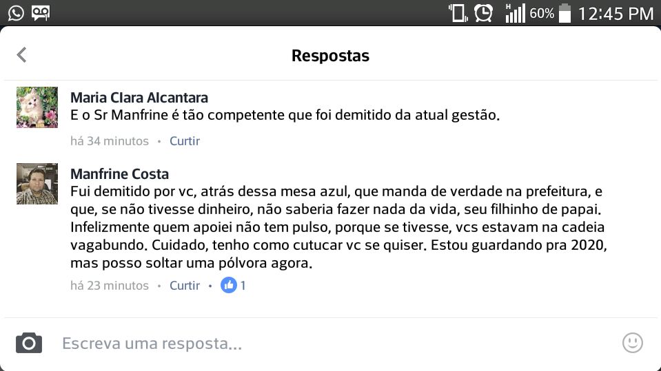 Sobre a postagem que critico a atual gestão sobre a demissão dos encarregados de distribuir água nos bairros, reafirmo que houve amadorismo da secretaria de administração em alertar o prefeito das consequências que trariam junto à comunidade, uma vez que um serviço tão essencial quanto o fornecimento de água nas casas dos munícipes não poderia ser banido de maneira abrupta e sem diálogo. Mesmo repassando o sistema ao DEPASA, a continuidade do serviço seria obrigatório, uma vez que já é ofertado esta demanda em bairros da zona urbana e comunidade rural.