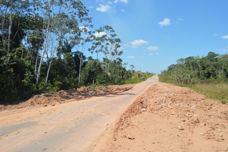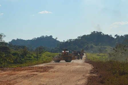 Em um dos trechos mais danificados da BR 364, há apenas uma tímida frente de serviço fazendo uma manutenção em alguns buracos. A frente está localizada nas proximidades do igarapé Mamoré (entre os rios Gregório e Acuraua).