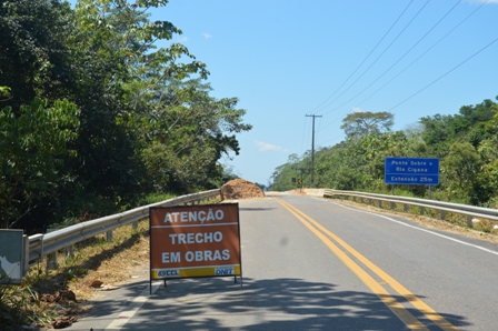 Há diversas placas do DNIT e Governo Federal anunciando obras em trechos que na verdaxde, não ocorrem. O primeiro deles é na ponte do rio Cigana, onde a cabeceira ruiu durante o último inverno. A obra, executada durante o governo Orleir Cameli pela empresa de Eládio Cameli, permanece sem manutenção.