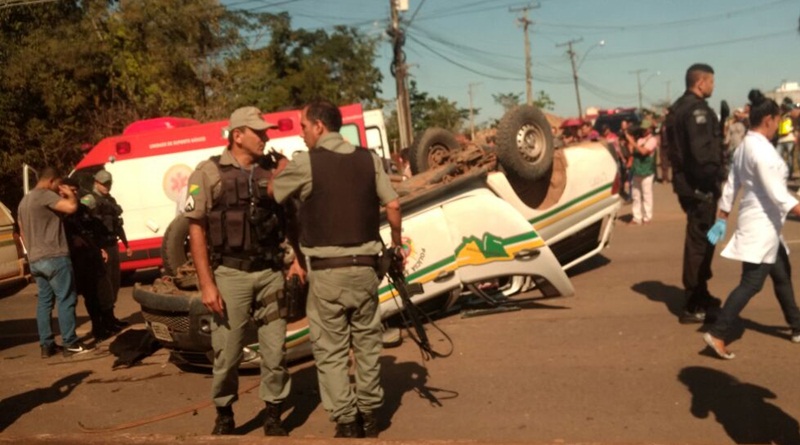 Uma viatura do Quarto Batalhão de Polícia Militar com três policiais capotou na manhã desta terça-feira (11), em frente ao prédio da Polícia Federal, localizado na Via Verde, BR-364, em Rio Branco. Dos três ocupantes dois ficaram feridos e foram levados ao Pronto Socorro.