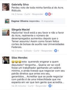 “Não é inteligente ficar posando ao lado de um presidente que tem menos de 3% de aprovação e ainda ficar agredindo senadora numa votação, num gesto extremamente antipopular. Para com isso ! Tem que fazer a sua política. Larga o Temer pra lá, rapaz. Desse jeito, só vai sustentar a base de corrupção como sempre foi. Qualquer político que tem responsabilidade com sua história política não se junta a grupos que compram deputados. Tem que votar de acordo com sua consciência, em propostas progressistas capazes de fazer reformas estruturais que o país tanto precisa. Mudanças no conceito da política trabalhista e previdenciárias são necessárias, mas não nos moldes que essa quadrilha está fazendo.”