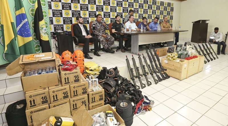 O governador Tião Viana realizou na manhã desta terça-feira, 5, a entrega de armas, munições e equipamentos para as forças de segurança pública do Acre, num investimento de R$ 2,5 milhões. A solenidade foi realizada no auditório da Secretaria de Estado da Polícia Civil (SEPC).