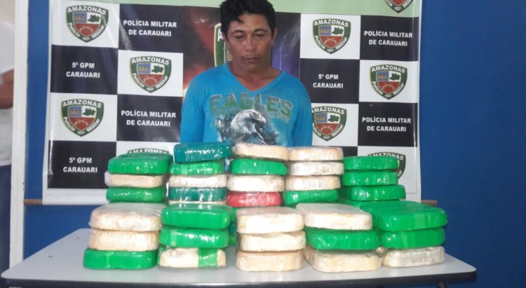 Alcenir Ambrósio, 35, foi preso, nessa quinta-feira (21), em posse de 50 quilos de pasta base de cocaína e R$ 2 mil em espécie, quando seguia em uma canoa pelo Rio Juruá, nas proximidades de Carauari (a 788 quilômetros a oeste de Manaus). O homem foi contratado para levar o entorpecente até Manaus, conforme informações da assessoria de imprensa da Polícia Militar (PM).
