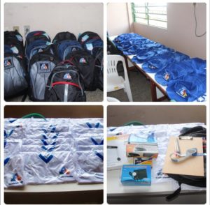 Os kits foram adquiridos com recursos oriundo do PACS – Programa de Agentes Comunitários de Saúde do Ministério da Saúde. Compõem os kits, uma mochila, balança digital, aparelho de PA, fita métrica, esfigmomanômetro, estetoscópio, prancheta, grampeador, grampo, lápis caneta e borracha, além do fardamento (Blusa com identificação e chapéu), todos os materiais necessários para o exercício de suas tarefas.