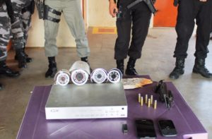 Em poder dos investigados a polícia apreendeu arma de fogo, munições, droga, dinheiro em espécie e câmeras de videomonitoramento, usadas por criminosos, para acompanhar a movimentação das polícias.