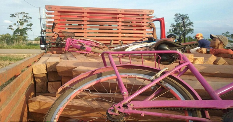 Na carroceria do caminhão foram encontradas pelo menos 90 estacas da espécie Eschweilera Amara, conhecida popularmente como matamatá-vermelho. A medição constatou que havia 1,8 metro cúbico da madeira.