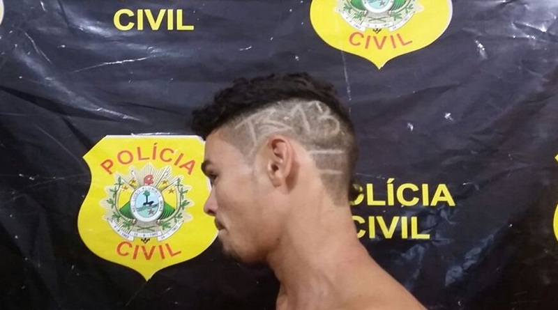 Além disso, o acusado ainda ostentava o nome de uma facção criminosa, feita através de um corte de cabelo em sua cabeça. Ele faz referências ao grupo criminoso que faz parte.