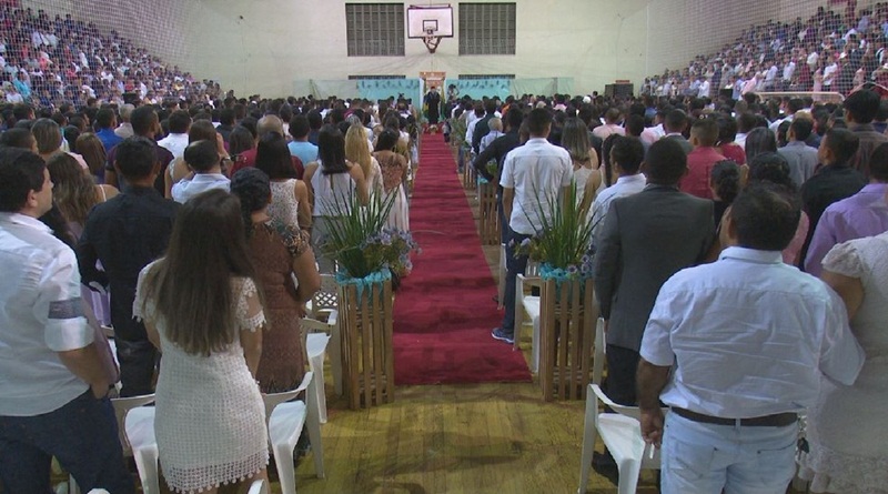 Um grupo de 650 casais se reuniu no Ginásio Poliesportivo Jader Machado, no bairro João Alves, em Cruzeiro do Sul para mais uma edição do Casamento Coletivo.