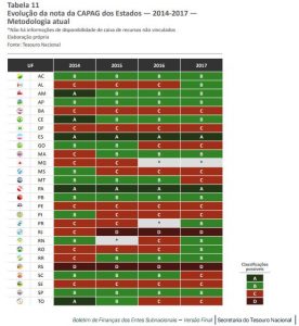 Trata-se de um rating fundamental para os governadores. Isso porque somente os estados que recebem notas A ou B têm acesso a empréstimos da União.
