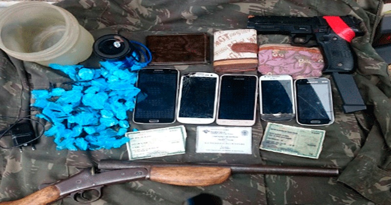Além disso, havia também papelotes de uma substância aparentando ser cocaína, uma farda do Exército e aparelhos celulares. Todo material apreendido foi encaminhado para Delegacia de Flagrantes assim como as pessoas. A maior parte dos integrantes era formada por adolescentes. Foram encaminhados para a Delegacia do Menor.