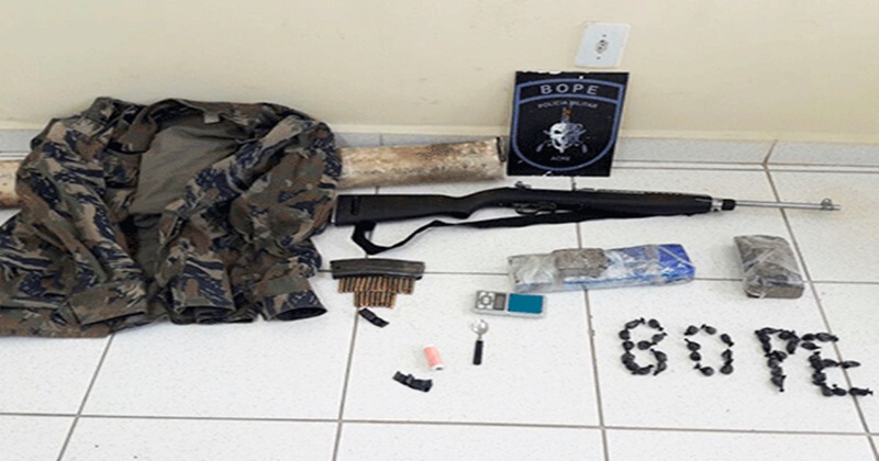 Após buscas, BOPE apreende carabina ponto 30 e maconha