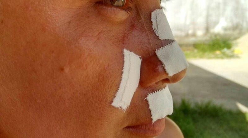“A gente estava no carro quando ele começou a discutir por causa de ciúmes foi então que acertou o copo na minha cara”, contou.