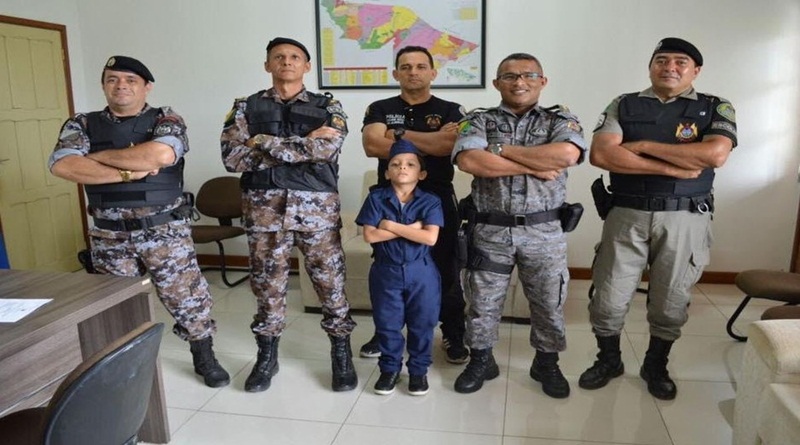 O pequeno Marquelbe Felipe Gomes, de 7 anos, já sabe desde cedo qual a profissão que quer ser quando crescer. Dentre as muitas opções, ele sonha em ser Policial Militar. Nesta sexta-feira (22), o menino fez uma visita ao quartel do 6º Batalhão da Polícia Militar e teve um dia como policial.